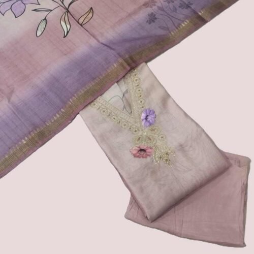 Pink Chikan Unstitched Suit