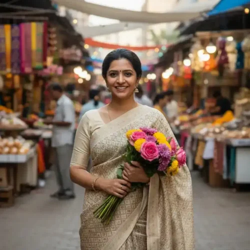 Cream Kanjivaram Silk Saree